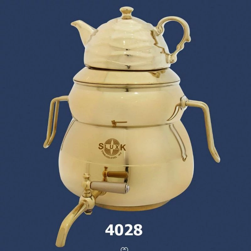 کتری قوری استیل طلایی کف چدن4028 (اس لوکس)