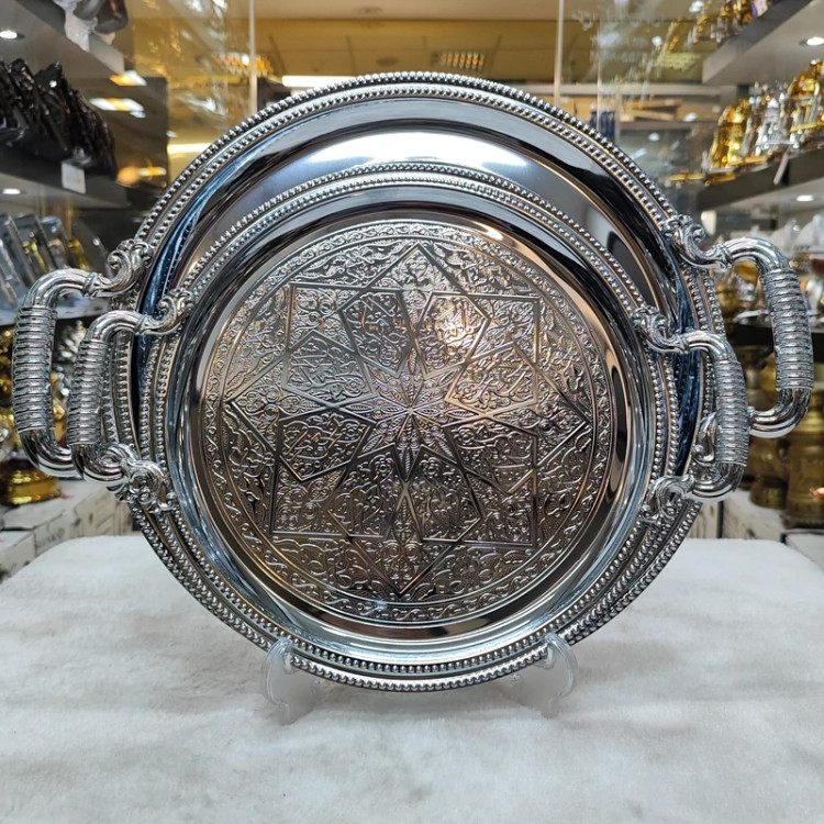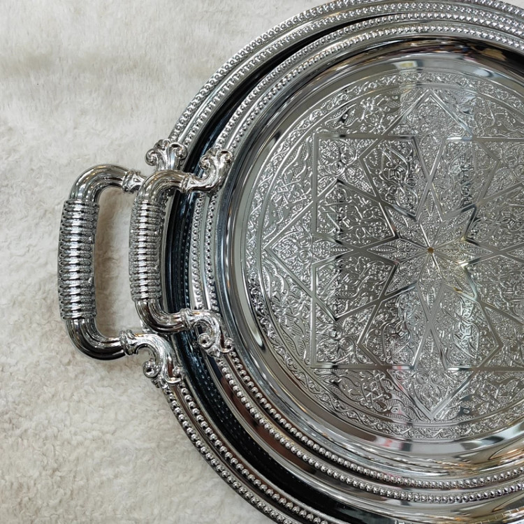 جنس فلزی ضخیم دو عددی و دو سایز بزرگو کوچک مدل گرد سیلور سایز بزرگ با قطر(35) سایز کوچک با قطر(29) دسته از جنس زاماک (آلیاژ روی و آلومینیوم) دارای جعبه ی کادویی برند وینکس کفه ی سینی ها طرح دار زیبا