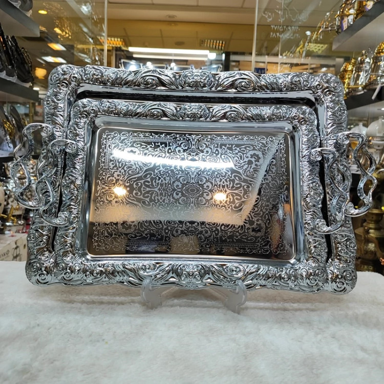 فلزی ضخیم با ورق 0/8 طرح دار شکیل سیلور دو عددی در دو سایز بزرگ و کوچک سایز بزرگ(43در 32) سایز کوچک(36در25) دسته ها از جنس زاماک(آلیاژ روی و الومینیوم) رنگ سیلور درخشان جعبه کادویی زیبا برند وینکس