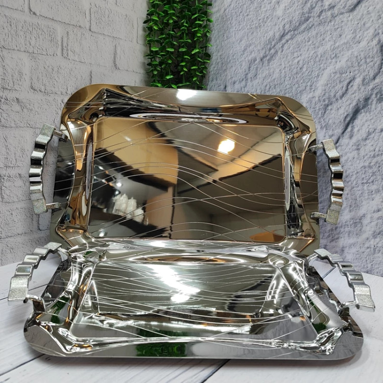 سینی استیل جفتی پذیرایی ضخیم برند(وینکس)