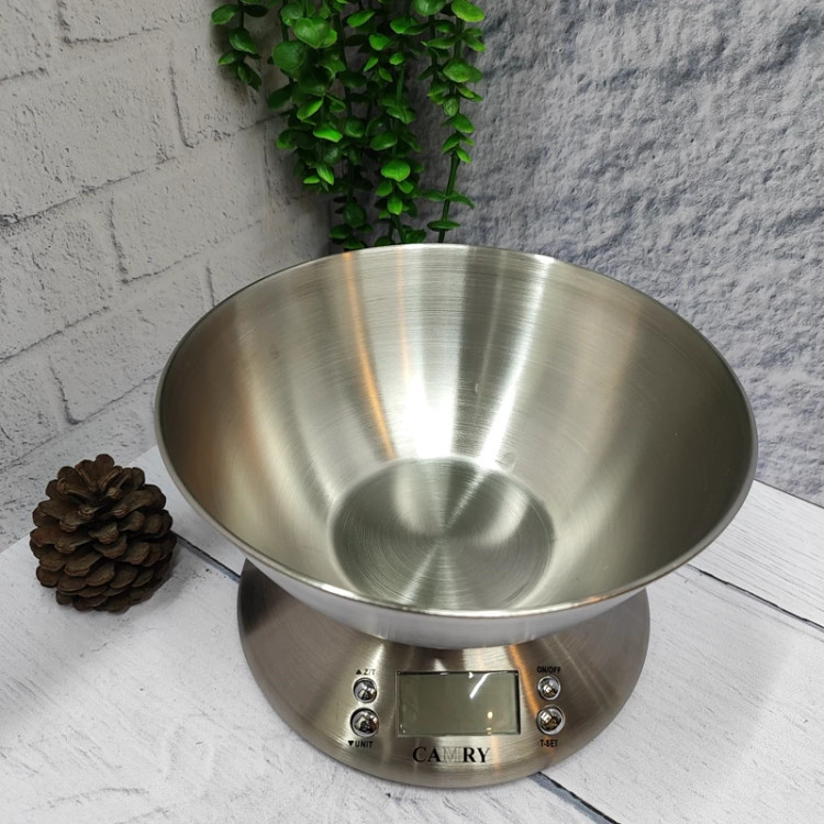 صفحه گود گرد استیل زیبا دقتش بسیار بالاست تا یک گرم هم میکشه 5کیلویی در 2رنگ استیل براق و استیل مات بسیار زیبا و سبک پارسنگ دار باطری خور برند (کمری)