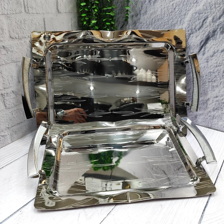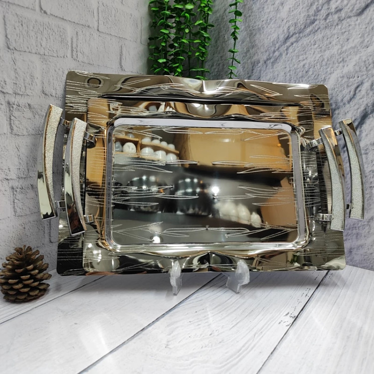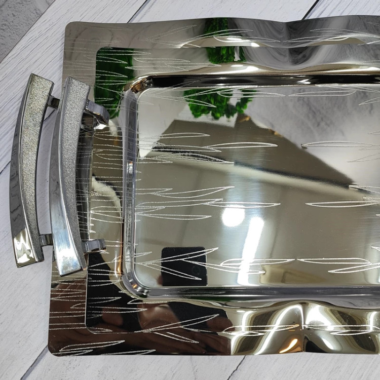 استیل یک میل فوق ضخیم خارجی جنس دسته ها زاماک(آلیاژ روی و آلومینیوم) درجه یک در دو سایز استاندارد کاربردی . مدل نَک دار سایز سینی بزرگ(42در30) سایز سینی کوچک(35در25) سایز کف سینی بزرگ(32در 20) سایز کف سینی کوچک(27در 17) دارای جعبه کادویی زیبا همراه با کاور با 24ماه ضمانت برند وینکس