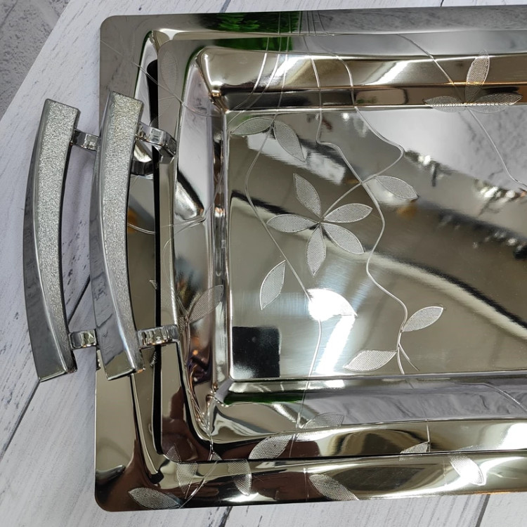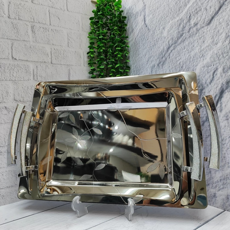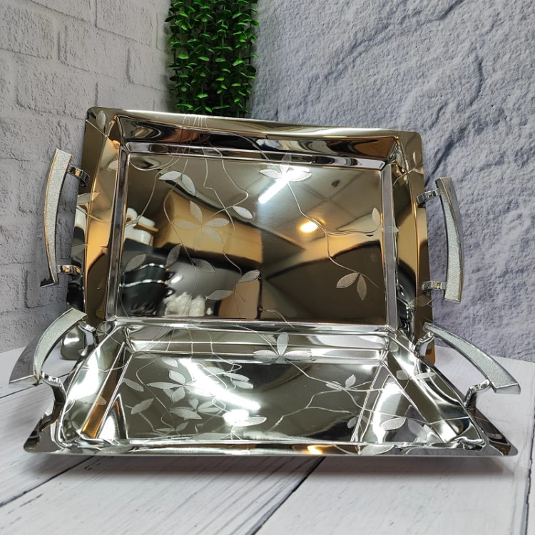 استیل یک میل فوق ضخیم خارجی جنس دسته ها زاماک(آلیاژ روی و آلومینیوم) درجه یک در دو سایز استاندارد کاربردی . سایز سینی بزرگ(42در30) سایز سینی کوچک(35در25) سایز کف سینی بزرگ(32در 20) سایز کف سینی کوچک(27در 17) دارای جعبه کادویی زیبا همراه با کاور با 24ماه ضمانت برند وینکس