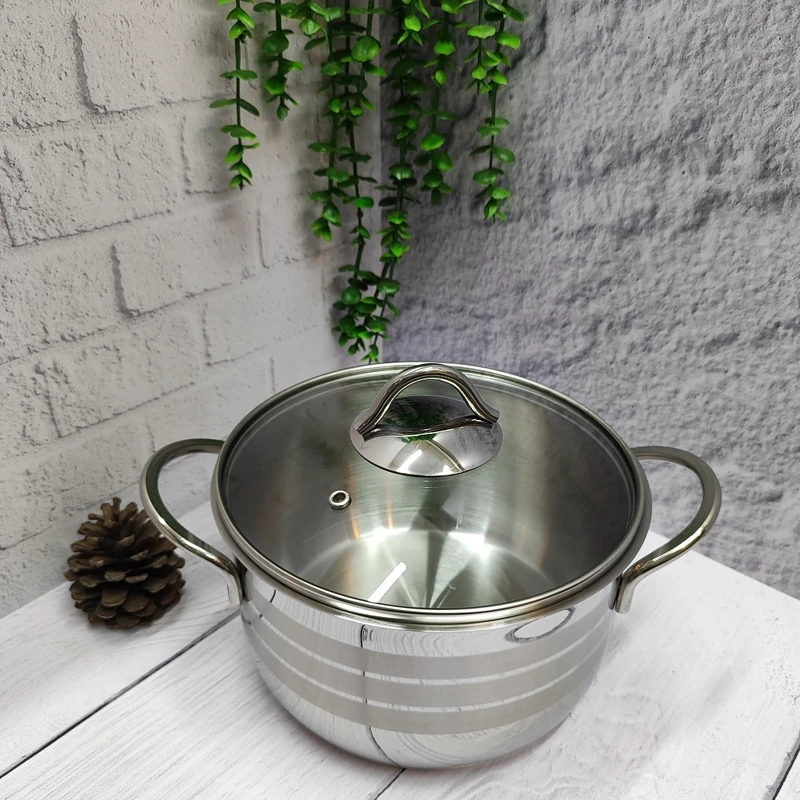 ساخته شده با استیل ورق یک میل ضخیم دارای کف چدنی بسیار سنگین و مقاوم دسته های تمام استیل درب شیشه ای زه دار سایز 22 برند دستی لوکس