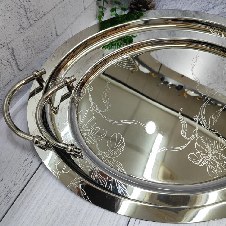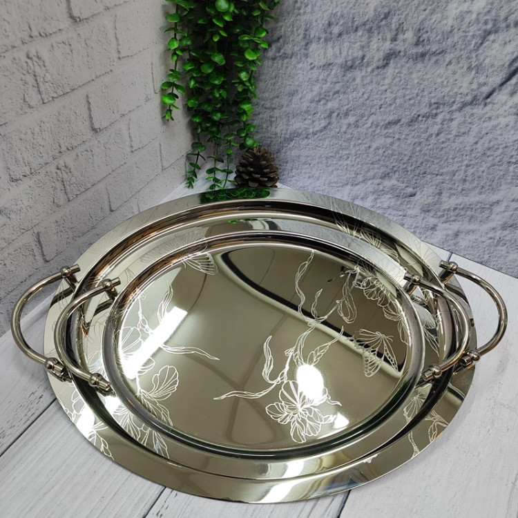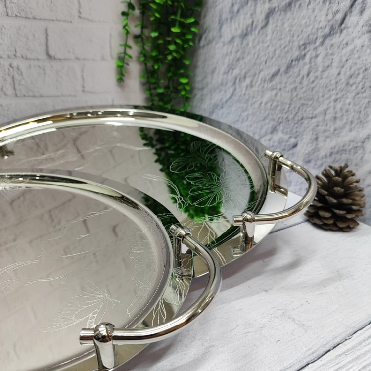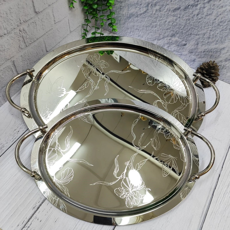 سینی استیل جفتی پذیرایی مدل بیضی برند(یونی هوم)