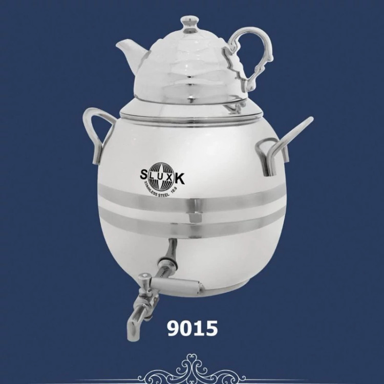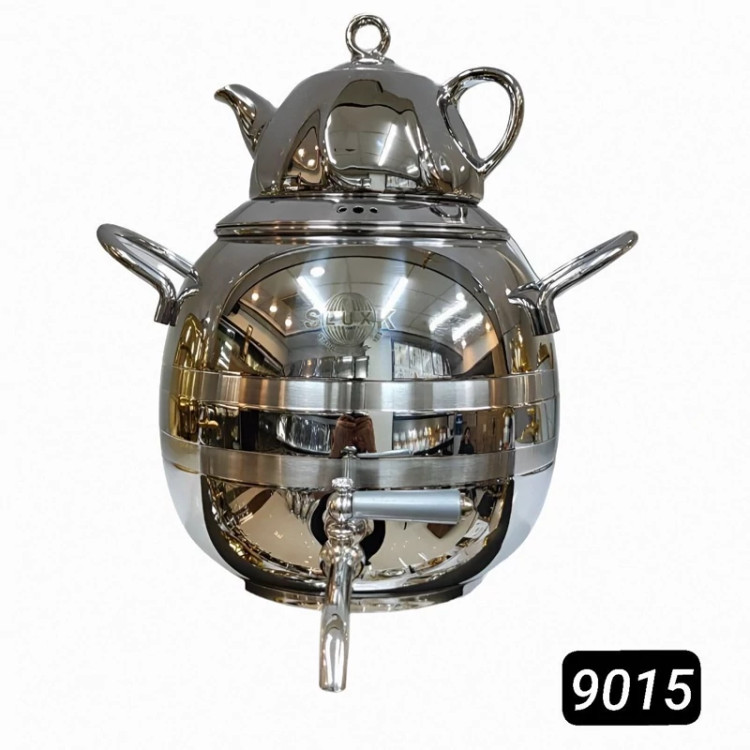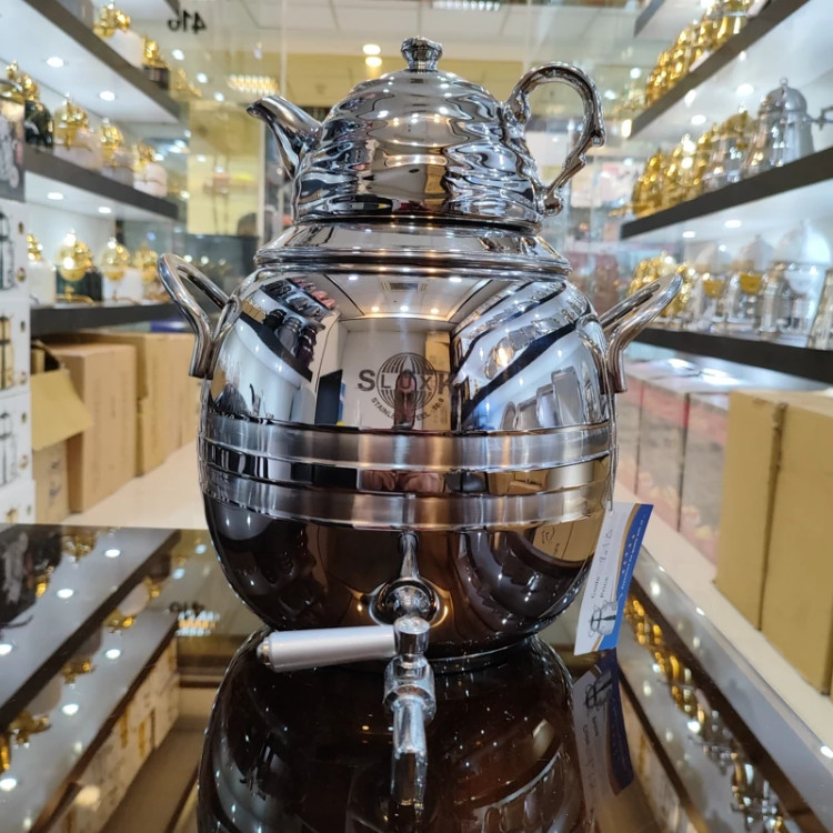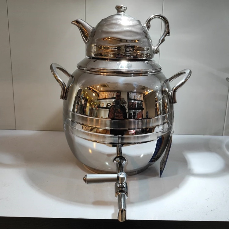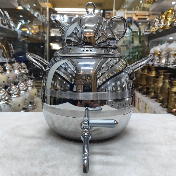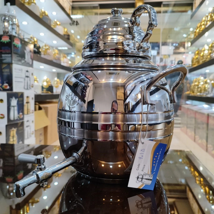 از تولیدات کارخانه با ورق استیل یک میل ضخیم حالت تخمه مرغی و خمره ای کار خیلی شکیل و زیباش کرده😍 کفه چدن مقاوم به کار برده کف کتری باعث ایمنی بالا کتری میشه و در برابر حرارت زیاد مقاوم هستش 6لیتر گنجایش کتری قوری چینی کروم شده با طراحی زیبا دسته و شیر خارجی درجه یک دارای درب شبکه ای 24ماه ضمانت داره برند اس لوکس