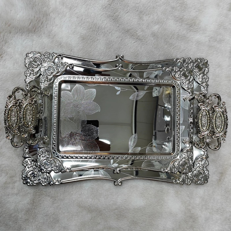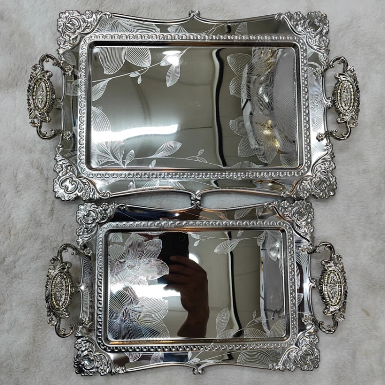 استیل وارداتی بسیار ضخیم (یک میل) دسته ها از جنس زاماک(آلیاژ روی و آلومینیوم) دو عددی در دو سایز کوچک و بزرگ سایز بزرگ(40در 28) سایز کوچک(33در 23) برند یونی هوم دارای جعبه کادویی شکیل طرح دار زیبا
