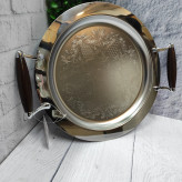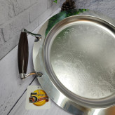 سینی استیل پذیرایی گرد دسته طرح چوب