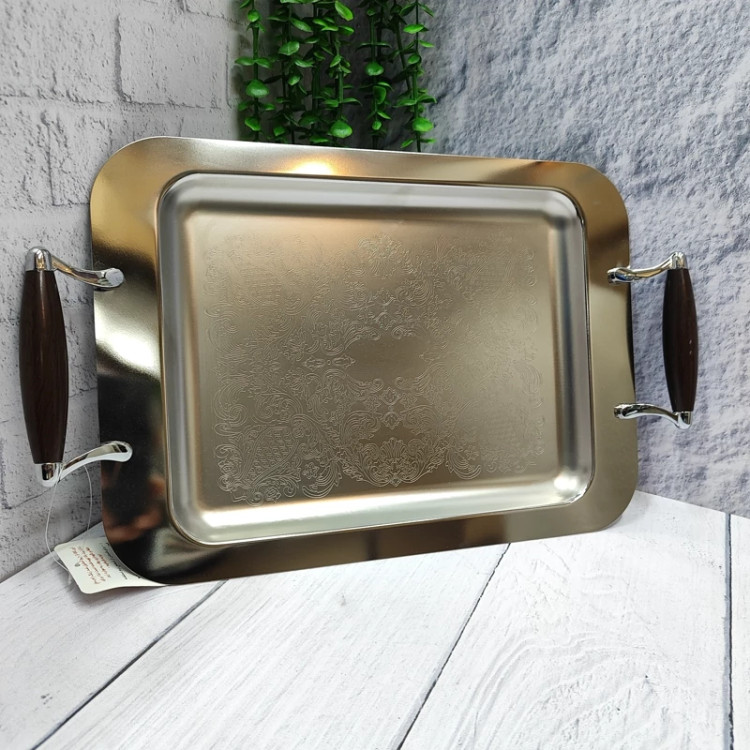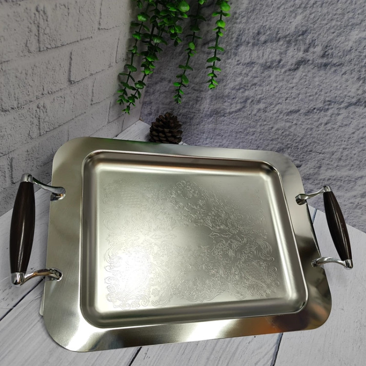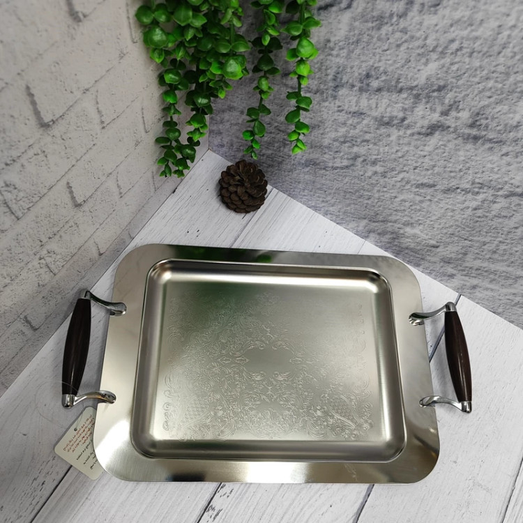 سینی استیل پذیرایی متوسط دسته طرح چوب