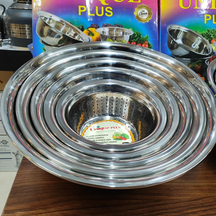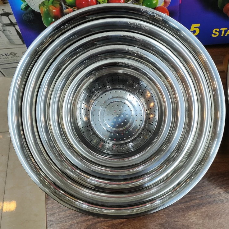 استیل درجه یک اهنربا نگیر آبکش 5 عدد در 5 سایز مختلف لگن 5عدد در 5سایز مختلف سایز های مفید 20.24.28.32.36 برند یونیک هک شده جعبه دار ابکش های سوراخ ریز وارداتی