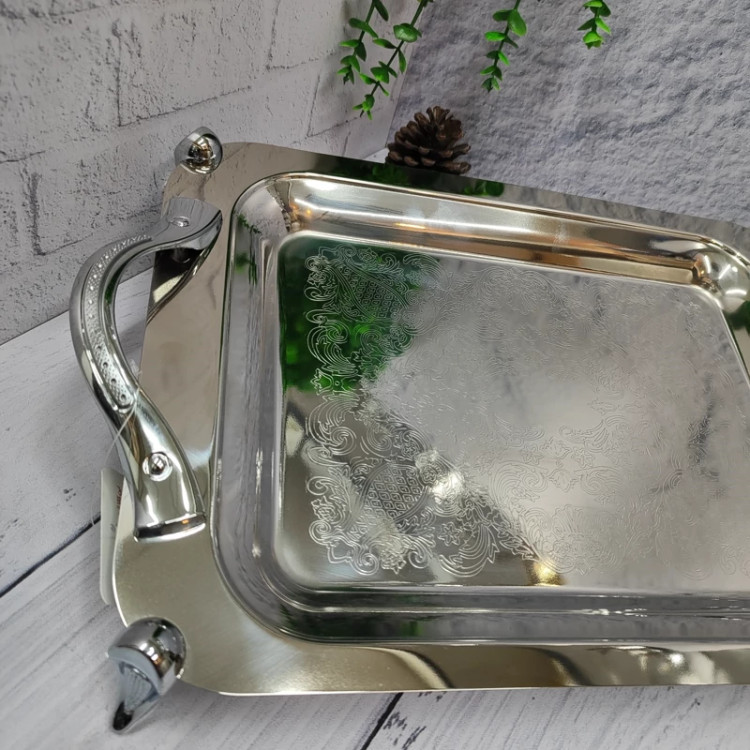 سینی پذیرایی استیل پایه دار متوسط