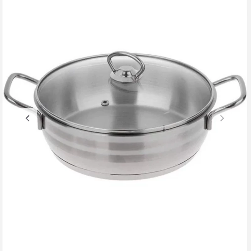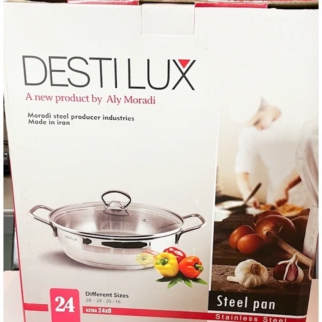ساخته شده با ورق استیل یک میل ضخیم کفه چدن ضخیم و سنگین که مقاومت تابه رو در مقابل حرارت بالا میبره دارای دو دسته استیل سایز 24 برند (دستی لوکس)