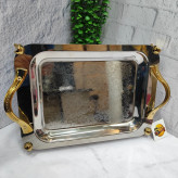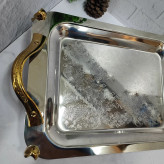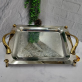 سینی استیل پذیرایی پایه دار طلایی