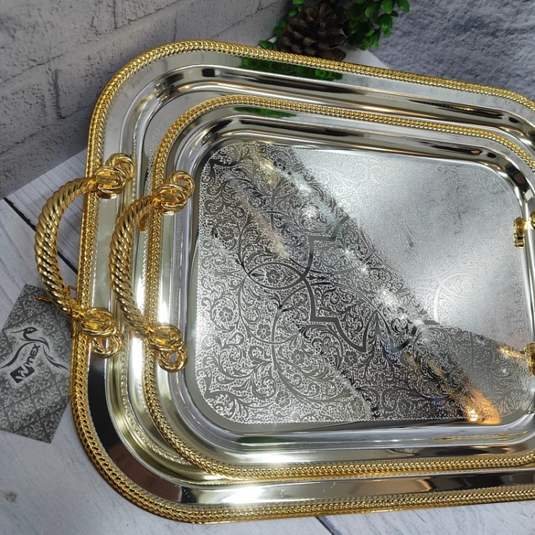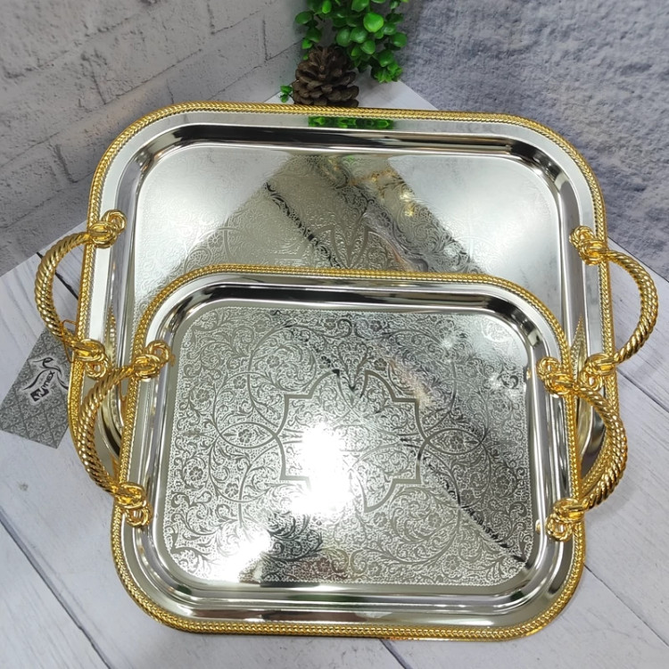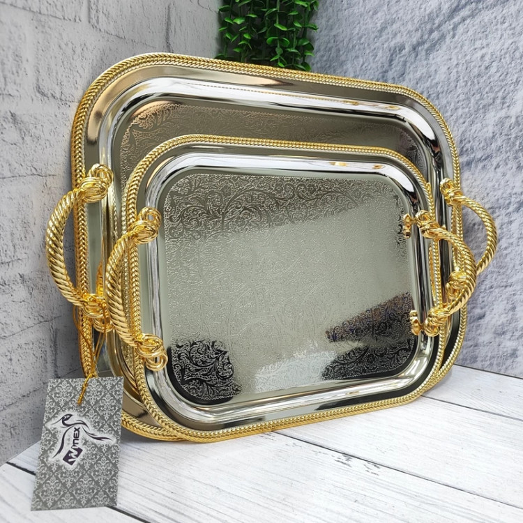سینی پذیرایی جفتی دسته طلا(وینکس)