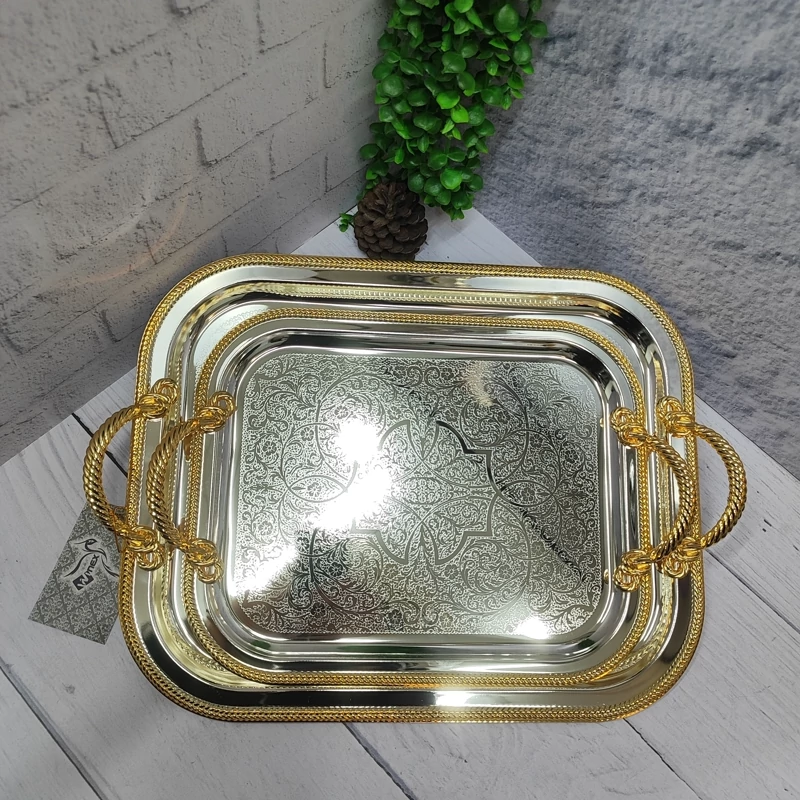 سینی پذیرایی جفتی دسته طلا(وینکس)