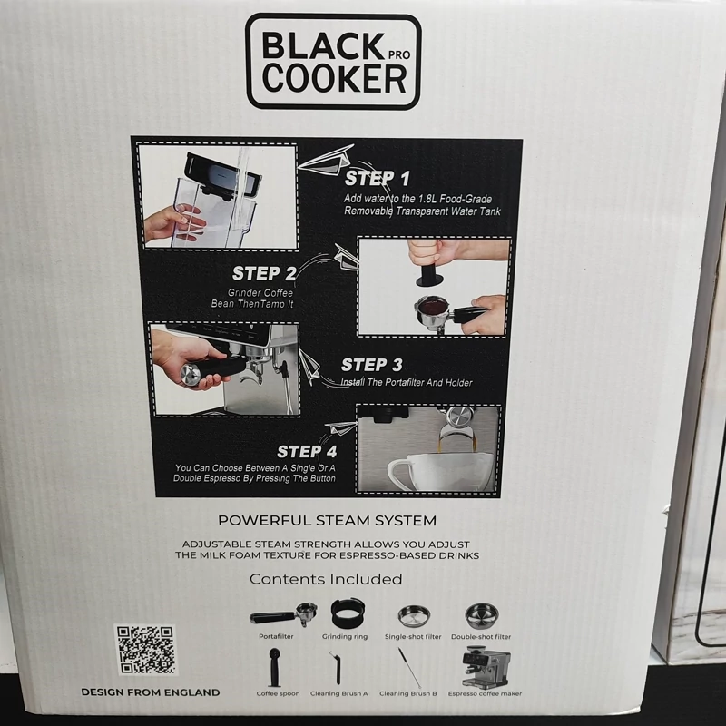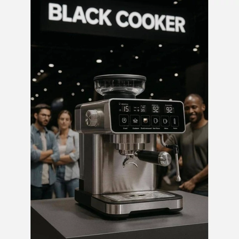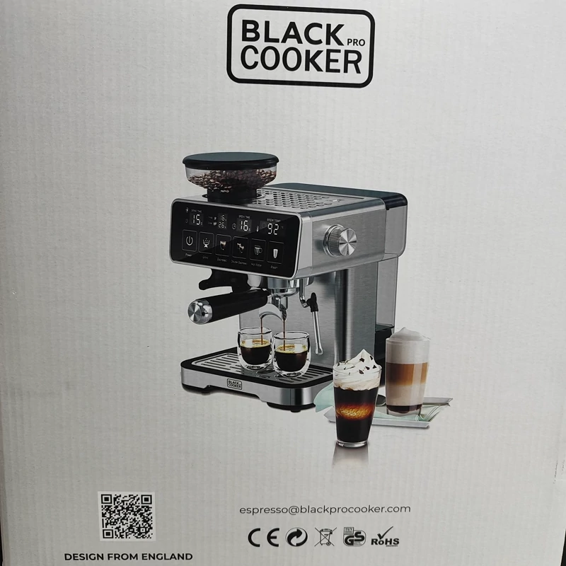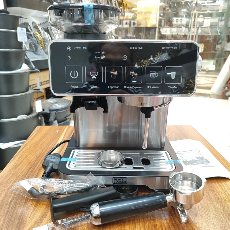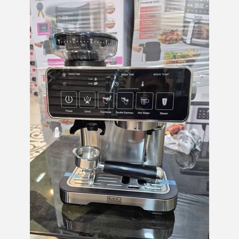 دو موتوره برای یکی برای تهیه اسپرسو و یکی برای آسیاب قهوه صفحه لمسی دارای چندین برنامه پیش فرض 1360 وات حجم دولیتر آب قدرت 20بار دارای پمپ بخار محفظه ی نگهدارنده ی دانه ی قهوه برای آسیاب مناسب تهیه اسپرسو.کاپوچینو.امریکنو. نیمه صنعتی دارای ضمانت نامه ی شرکتی 12ماهه برند بلک کوکر