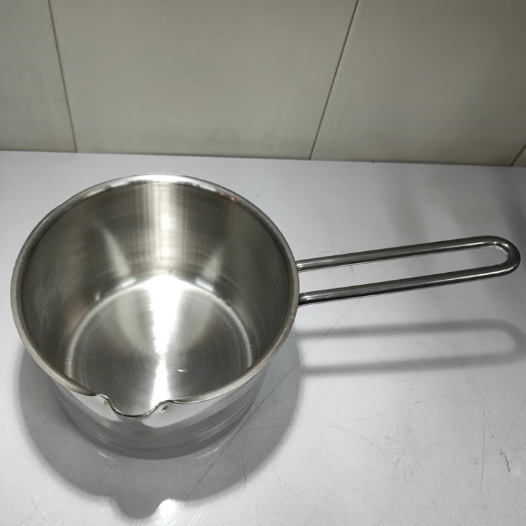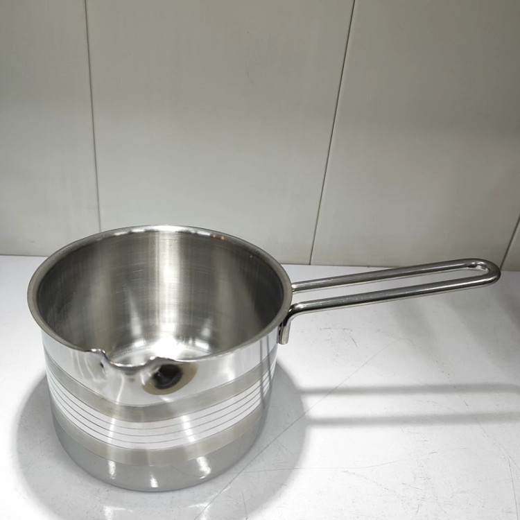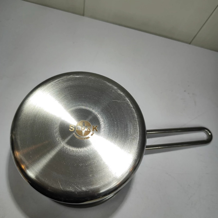 ساخته شده با ورق استیل ضخیم یک میل دسته استیل خارجی لبه نَک دار برای استفاده ی راحت تر حجم یک لیتری طرح روی کار مات و براق برند اس لوکس (سایز نیم لیتر همین مدل موجوده)