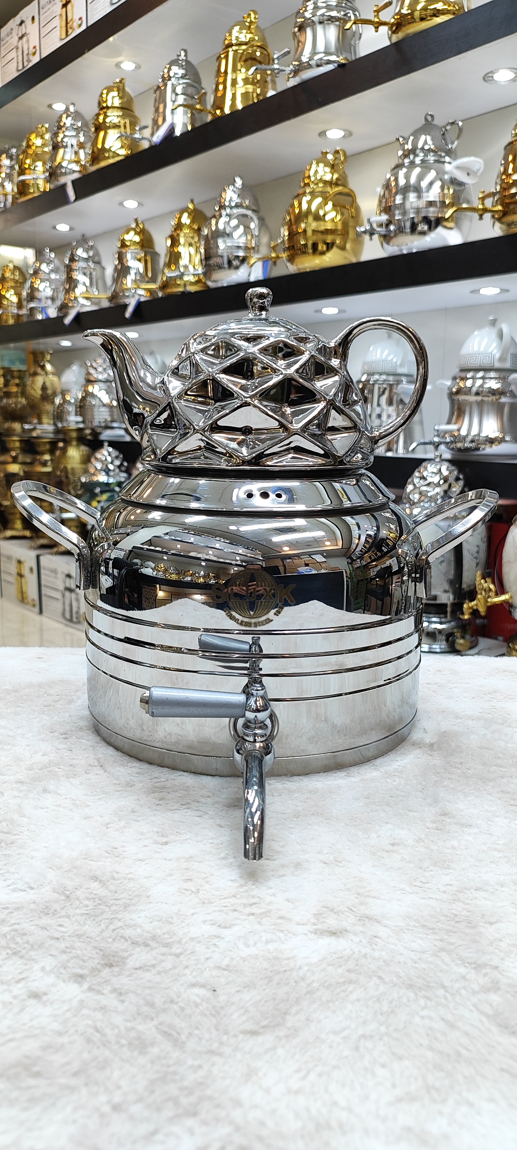 قوری چینی کروم شده با طراحی زیبا