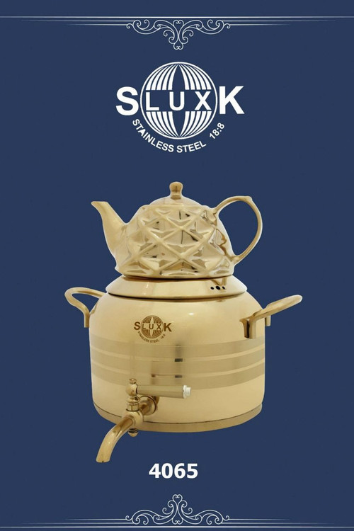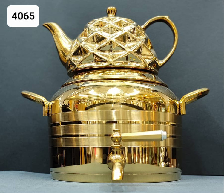 کتری قوری استیل طلایی کف چدن4065 برند(اس لوکس)
