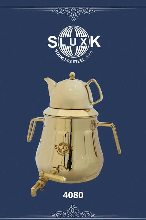 کتری قوری استیل طلایی فوق ضخیم کف چدن برند (اس لوکس)کد 4080