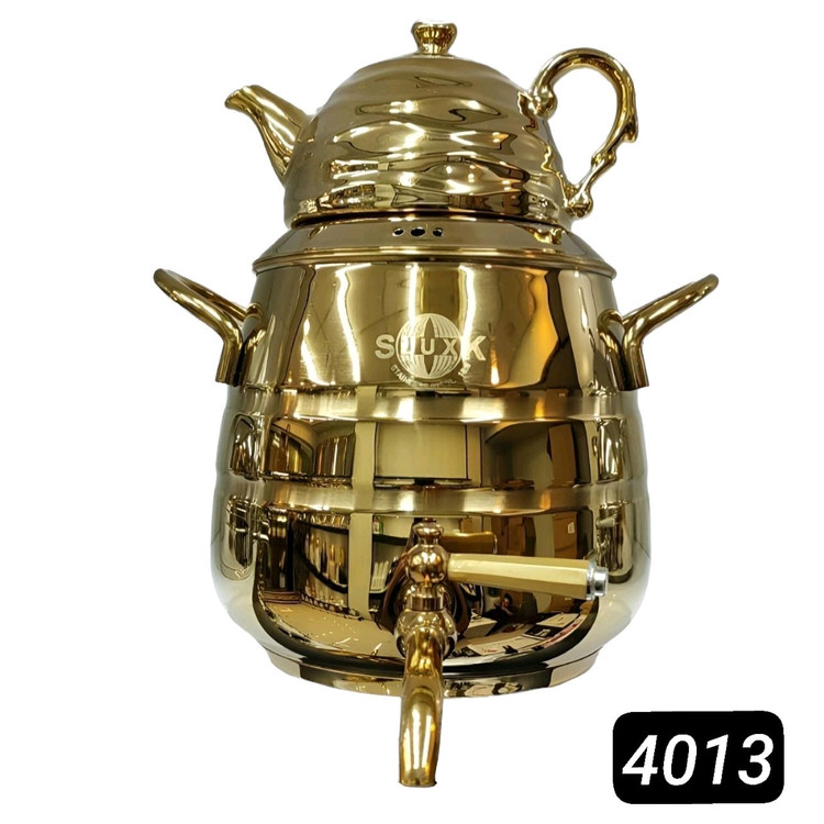 قوری چینی طرحدار کروم طلایی