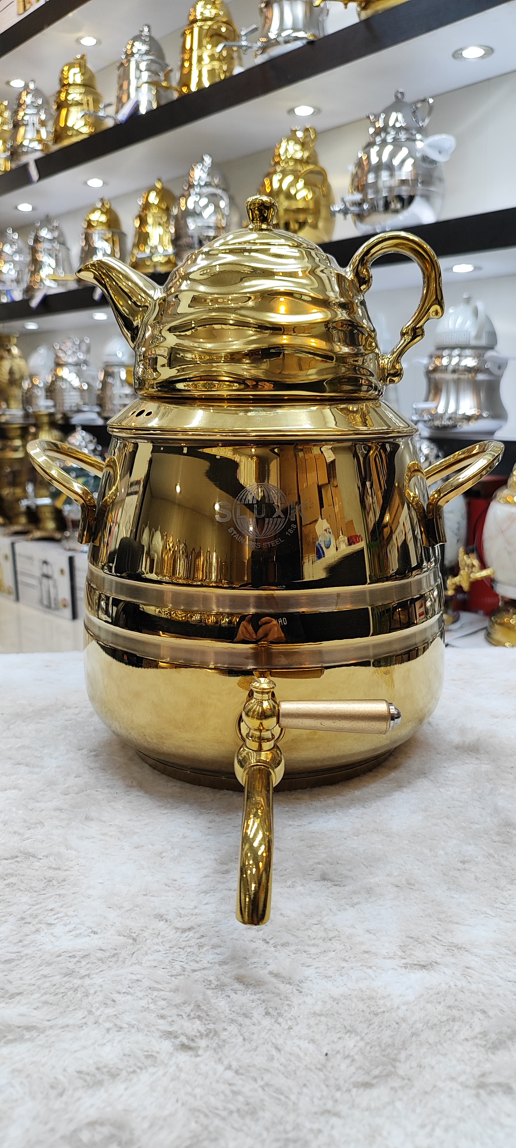 قوری چینی طرحدار کروم طلایی