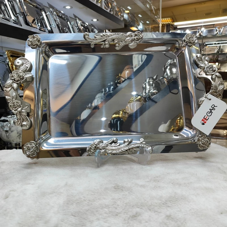 سینی استیل پذیرایی بزرگ پایه دار(نگار)