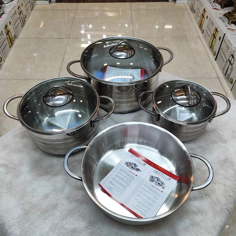 سرویس قابلمه استیل 7پارچه کف چدن(دستی لوکس)