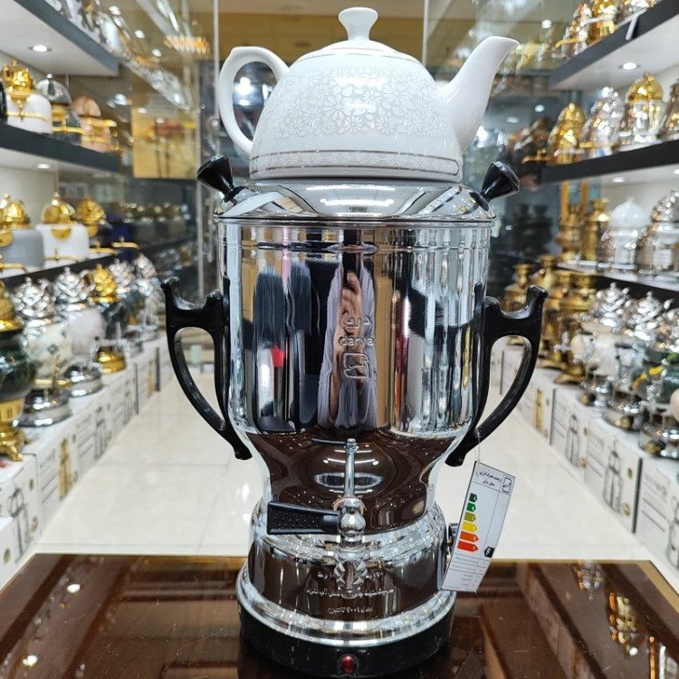 با علامت استاندارد کالا که از طریق کد روی کالا میتونید استاندارد و اصالت کالارو پیگیری کنید جنس بدنه برنجی مجهز به سیستم کنترل انرژی هیدرولیک المنت استیل با دوام 1000 وات .220ولت گنجایش 4 لیتر ی مفید قوری چینی درجه یک درب قفل دار با ضمانت 24ماهه