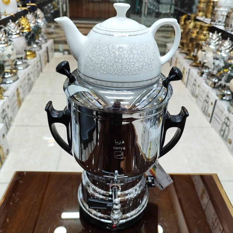 با علامت استاندارد کالا که از طریق کد روی کالا میتونید استاندارد و اصالت کالارو پیگیری کنید جنس بدنه برنجی مجهز به سیستم کنترل انرژی هیدرولیک المنت استیل با دوام 1000 وات .220ولت گنجایش 4 لیتر ی مفید قوری چینی درجه یک درب قفل دار با ضمانت 24ماهه