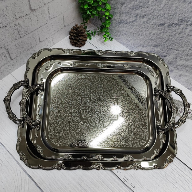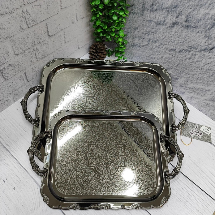 فلزی ضخیم ساخته شده با ورق 0/8 طرح دار شکیل دودی رنگ رنگ ثابت دو عددی در دو سایز بزرگ و کوچک سایز بزرگ (40در32 ) سایز کوچک(32در 25/5) دسته ها از جنس زاماک(آلیاژ روی و الومینیوم) جعبه کادویی زیبا برند وینکس