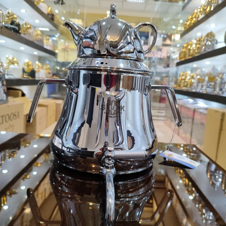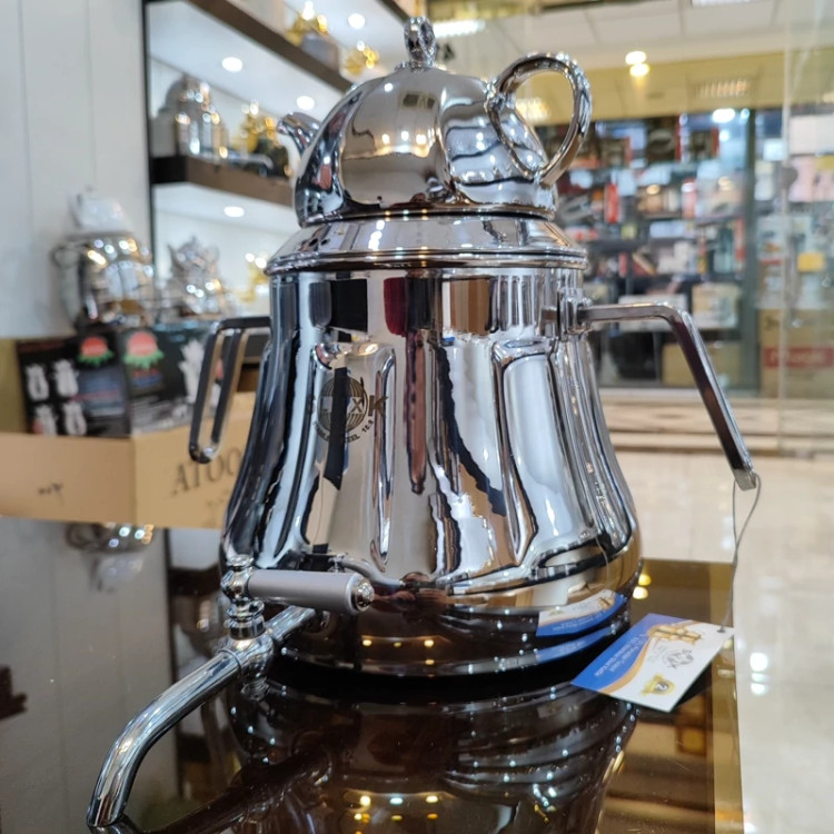 از تولیدات فوقوالعاده کارخانه با ورق استیل فوق سنگینه یکو نیم میل قالب اختصاصی کارخانه هستش که مشابه این محصول رو تو هیچ تولیدی پیدا نمیکنید چدن سنگین کف کتری بسیار مقاوم و ایمن در برابر حرارت هستش گنجایش 6لیتر اب دسته و شیر خارجی درجه یک قوری چینی کروم شده زیبا دارای درب شبکه ای 24ماه ضمانت برند اس لوکس