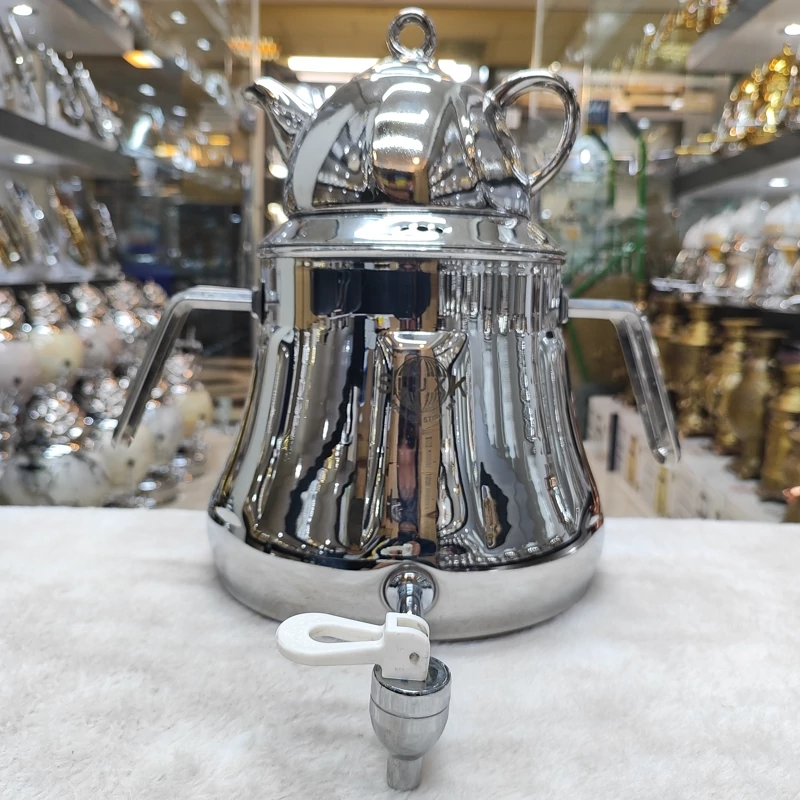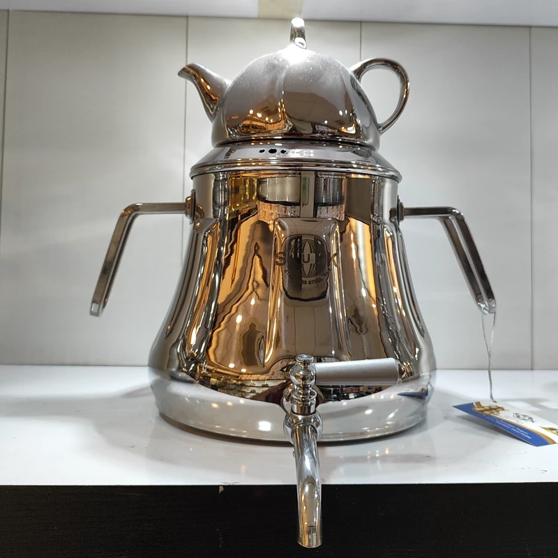 از تولیدات فوقوالعاده کارخانه با ورق استیل فوق سنگینه یکو نیم میل قالب اختصاصی کارخانه هستش که مشابه این محصول رو تو هیچ تولیدی پیدا نمیکنید چدن سنگین کف کتری بسیار مقاوم و ایمن در برابر حرارت هستش گنجایش 6لیتر اب دسته و شیر خارجی درجه یک قوری چینی کروم شده زیبا دارای درب شبکه ای 24ماه ضمانت برند اس لوکس
